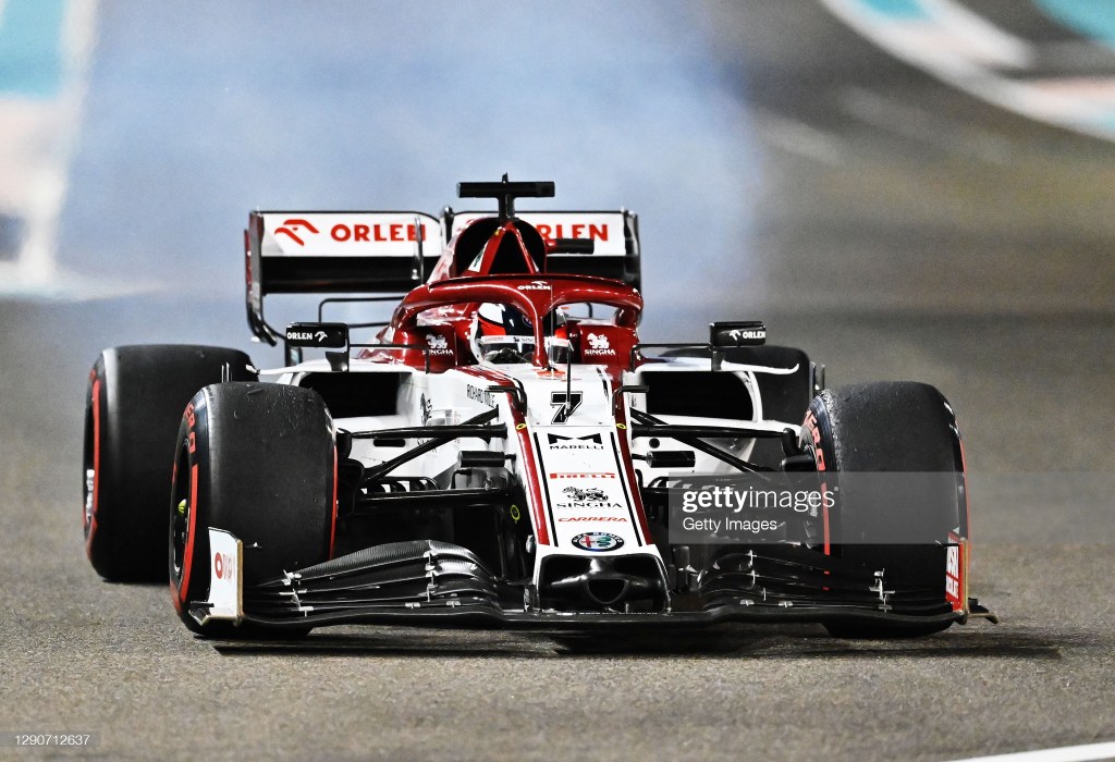 ABU DHABI, UNITED ARAB EMIRATES – DECEMBER 13: Kimi Raikkonen of Finland driving the (7) Alfa Romeo Racing C39 Ferrari during the F1 Grand Prix of Abu Dhabi at Yas Marina Circuit on December 13, 2020 in Abu Dhabi, United Arab Emirates. (Photo by Bryn Lennon/Getty Images)